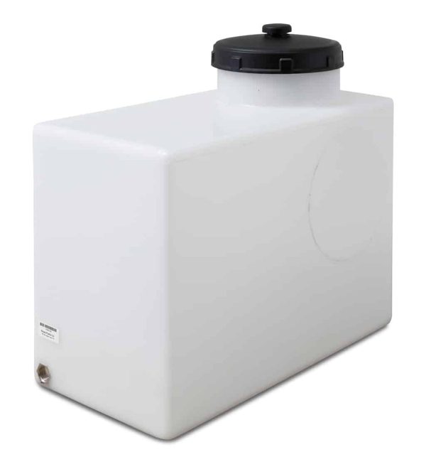 Stock tank is natural translucent finish with an 8″ vented lid and 3/4″ BSP outlet