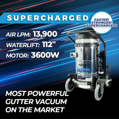 - OUR MOST POWERFUL GUTTER VAC YET: With 3600W of power, 13,900 LPM Airflow and 112” water lift, the Nitro delivers intense and rapid cleaning results.